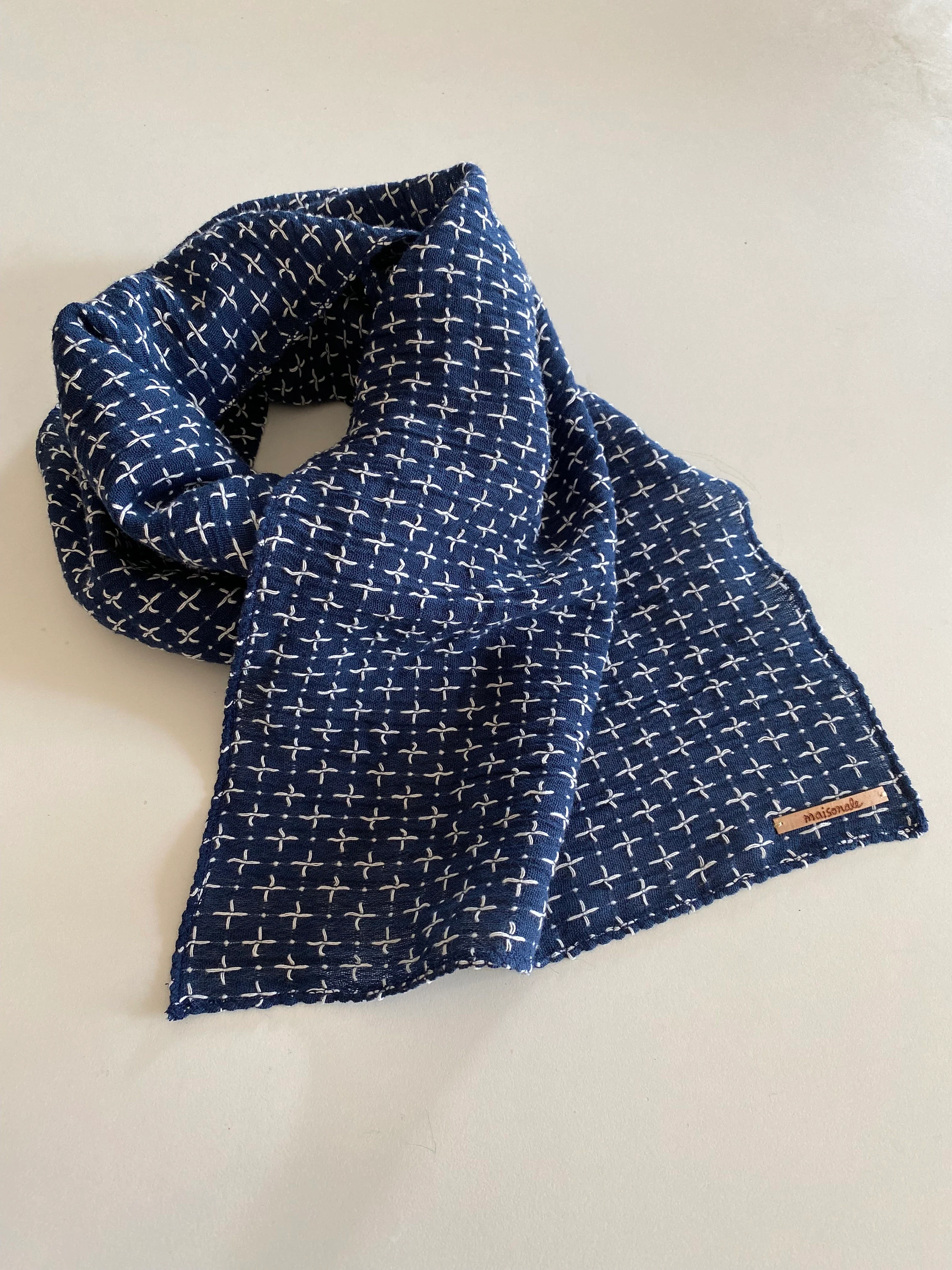 Cette écharpe légère 100 % coton aux couleurs d'une nuit étoilée est l'accessoire idéal pour rehausser votre tenue tout en vous protégeant du froid à la mi-saison.
